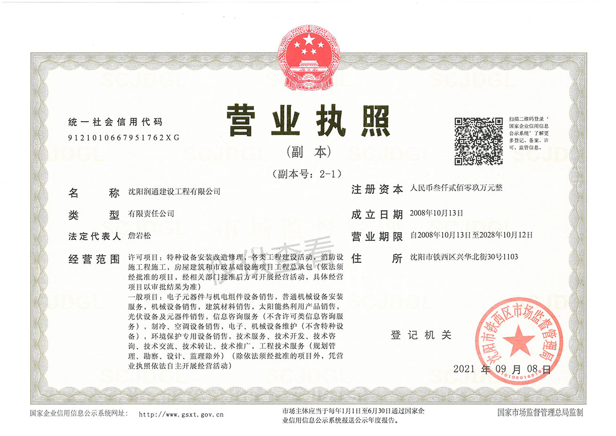 潤通建設(shè)營業(yè)執(zhí)照副本